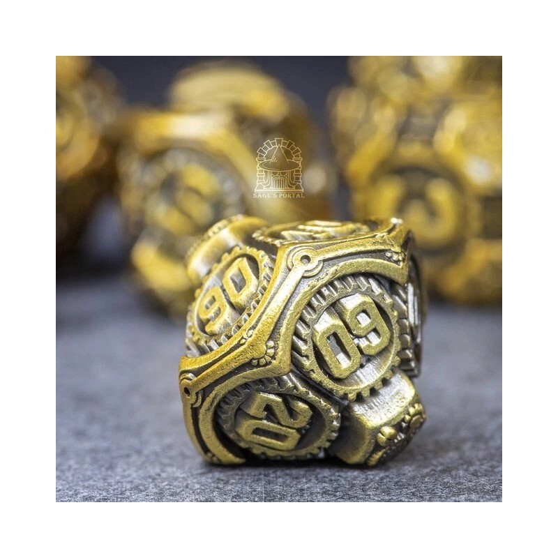 Sage's Artificer's Core Bronze Essence Metal Polyhedral Dice Set | Dnd Diceset