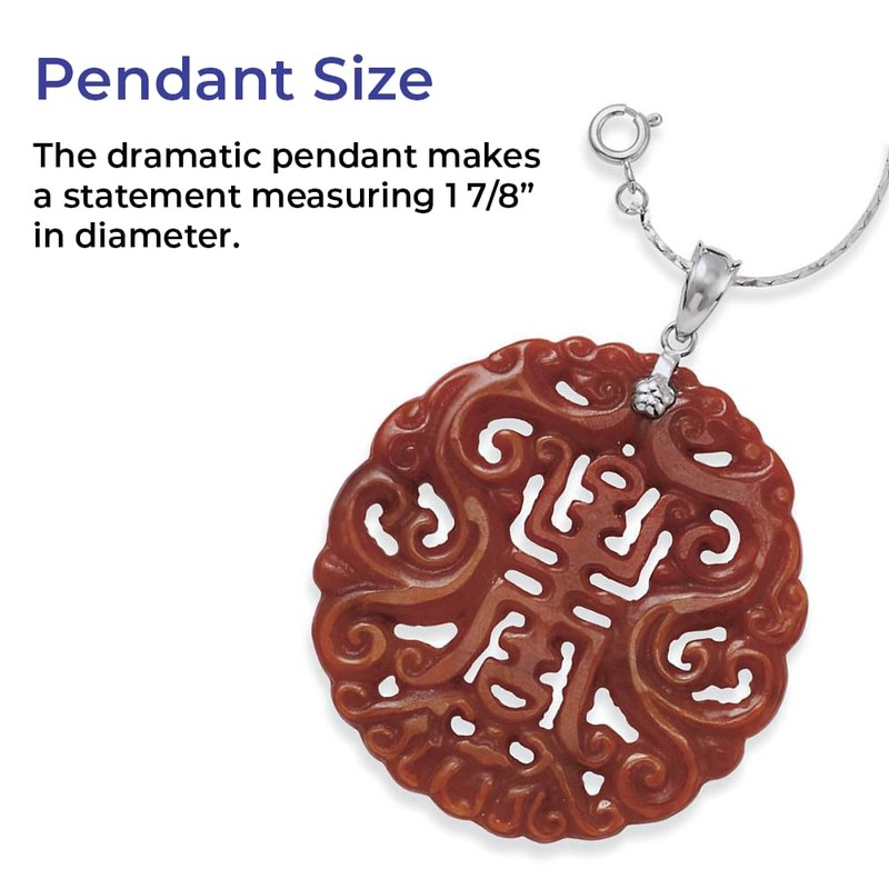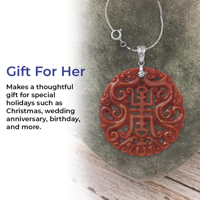 SAGEFINDS Red Jade Long Life Pendant - Round Medallion Sterling Elegance Pendant - Circle Pendant Necklace for Women – 24 inch
