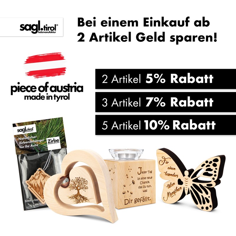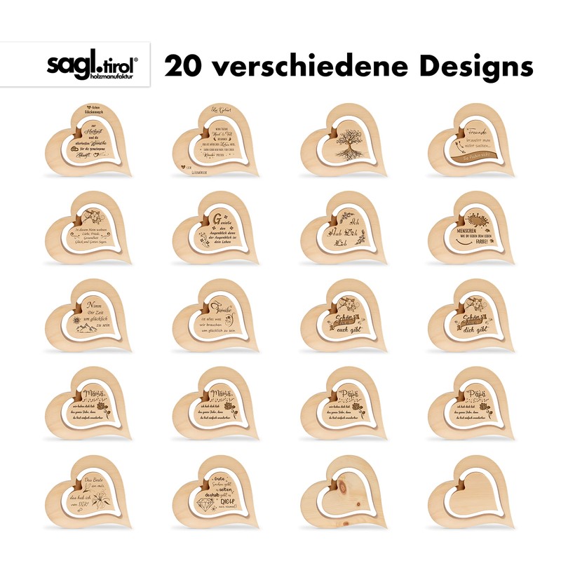 sagl.tirol Pine Heart with Floating Inner Heart and Engraving, 20 cm