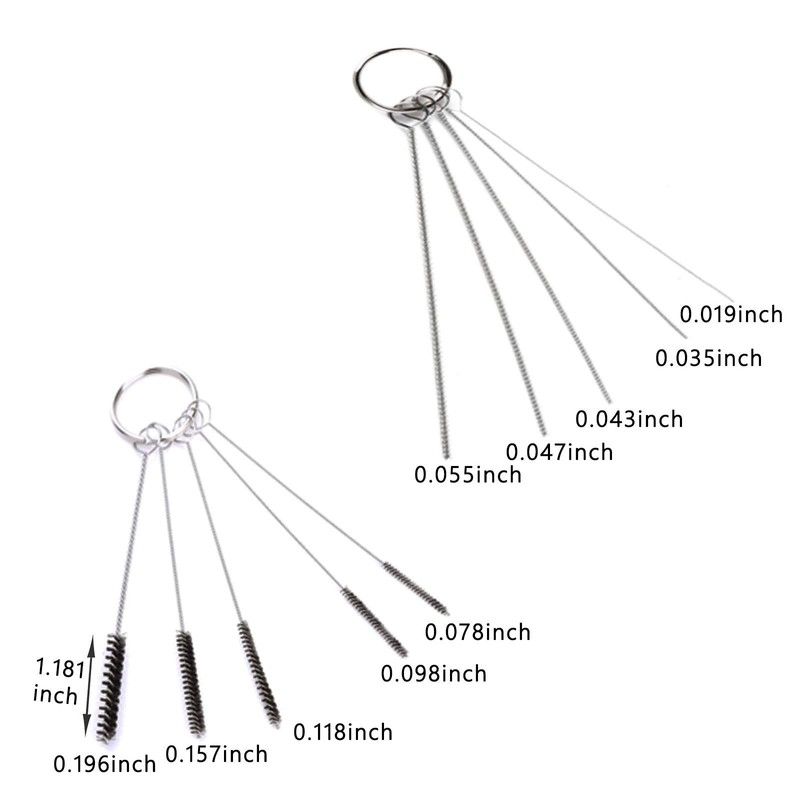 - AIRBRUSH CLEANING BRUSHES & NEEDLE SET: Stainless iron and nylon brush material. Easily clean paint off all the areas in airbrush.