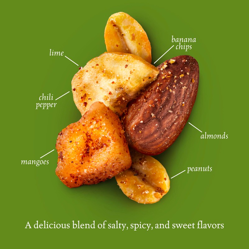 - MANGO TANGO ALMOND TRAIL MIX - Featuring a delicious blend of salty, spicy, & sweet flavors, this trail mix pairs dry-roasted almonds & peanuts with sweet, chewy dried mango & banana chips; a kick of chipotle chili & tart lime add a zingy finishing touch