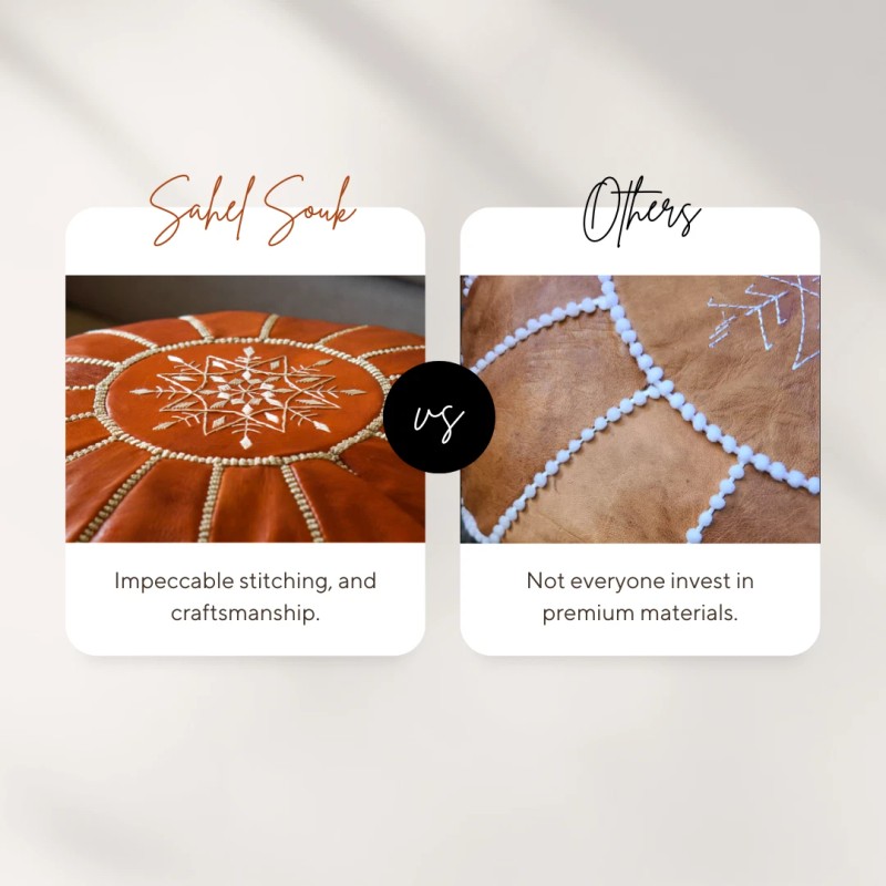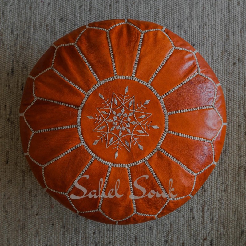 sahel souk Moroccan Leather Pouf Unstuffed Moroccan Pouf Cover Boho Ottoman (Tan Brown)