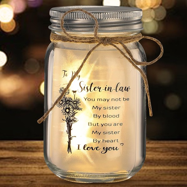 SAHIJE Sister in Law Birthday Gifts from Brother, Sister –Mother’s Day, Thanksgiving, Christmas, Wedding Gift -Mason Jar Night Light Home Décor Lamp