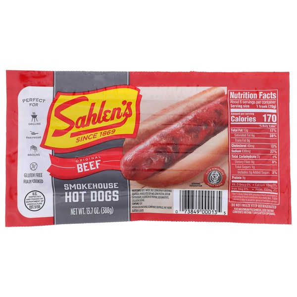 Sahlen's Original Smokehouse All Beef Hot Dogs with Tender Casing | Fully Cooked, Gluten Free | Perfect for Grilling, Pan-Frying and More | 5lb Pack