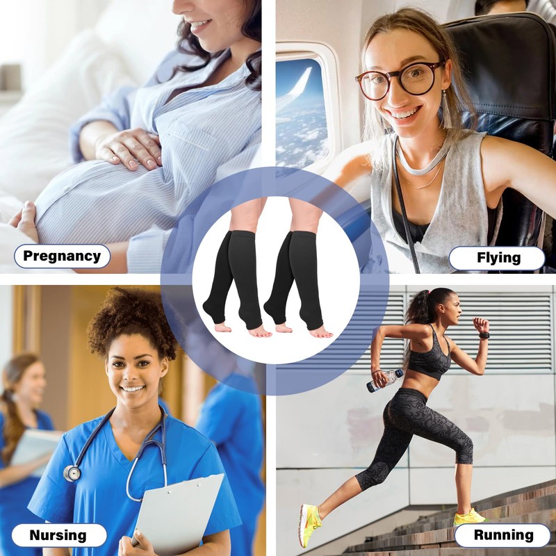 - 【Everyday Comfort with a Supportive Fit】These open-toe compression socks for women offer gentle support (20-30 mmHg) that helps your legs feel fresher during busy days, travels or just long walks.