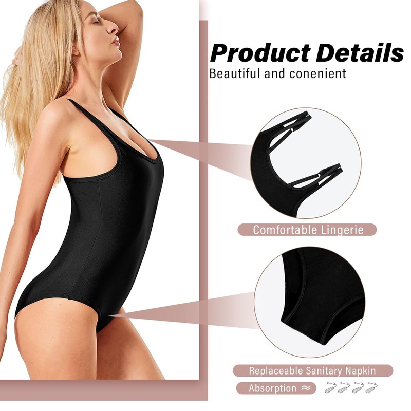 - Adjustable fit for an active lifestyle: Adjustable racerback straps + wide underbust support for different body types. Stylish black design combines fashion with functionality - ideal for teens, women and girls looking for discreet period protection without compromising on style.