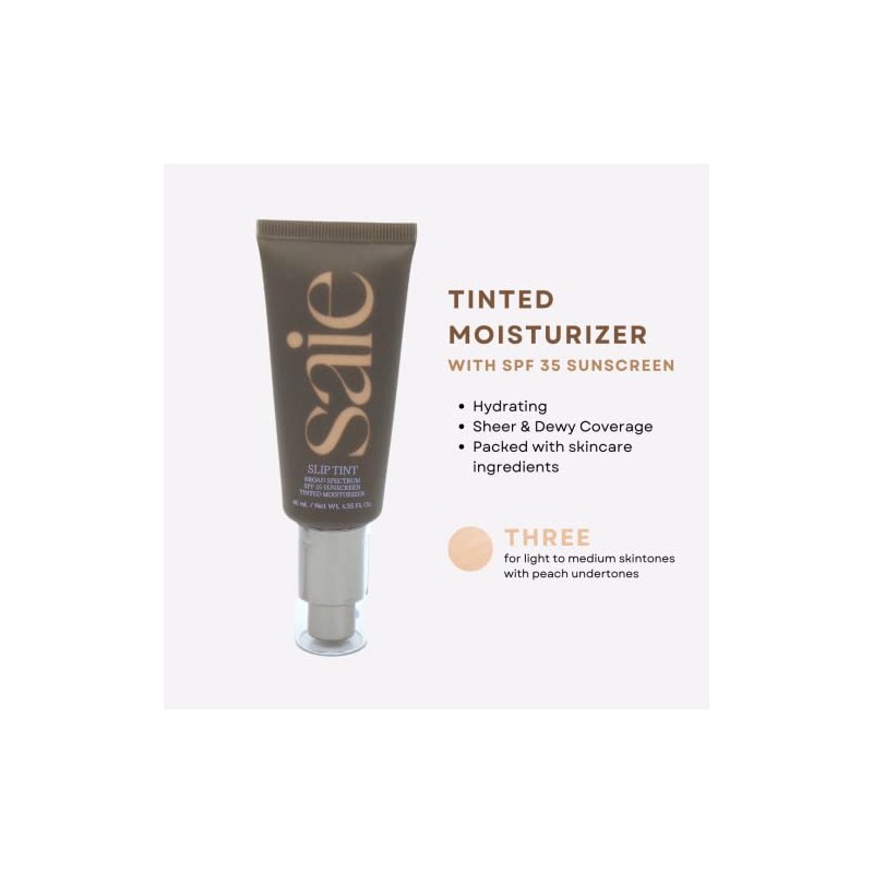 Saie Slip Tint Broad Spectrum SPF 35 Sunscreen Tinted Moisturizer - Three (Light to Medium - Peach) 1.36 oz