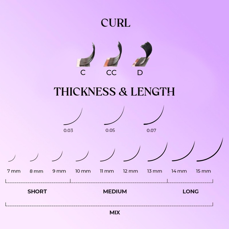- โจ ๐๐ฎ๐ฅ๐ญ๐ข๐ฉ๐ฅ๐ ๐๐ฎ๐ซ๐ฅ & ๐๐ก๐ข๐๐ค๐ง๐๐ฌ๐ฌ ๐๐ฉ๐ญ๐ข๐จ๐ง๐ฌ: Curls C/CC/D, thicknesses 0.03/0.05/0.07mm, and lengths 8-15mm give lash pros full flexibility to design soft natural looks or bold volume sets using one easy-to-use 16-row tray.