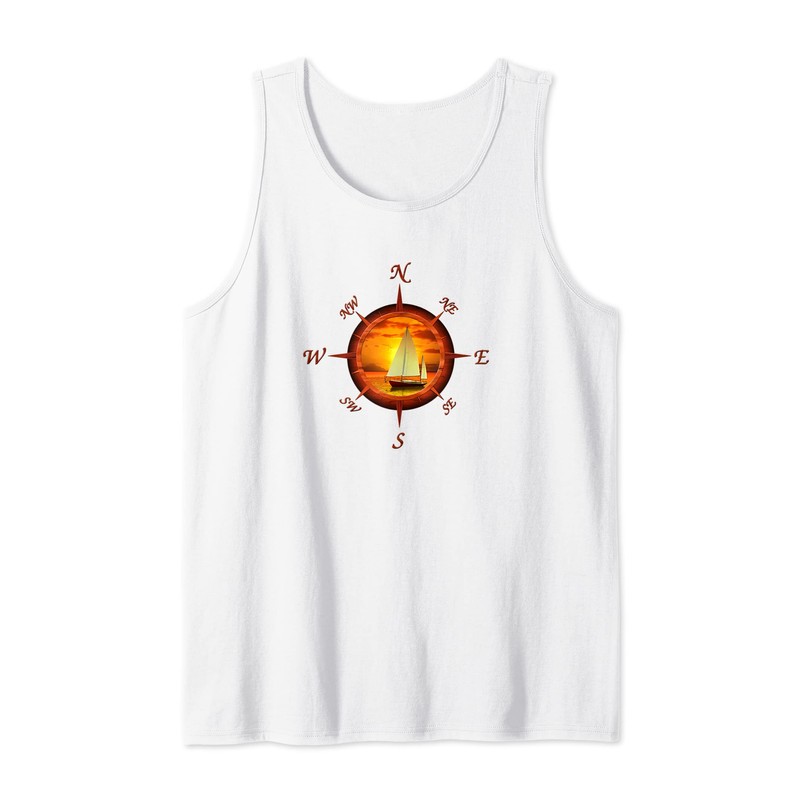 Sailing Compass And Sailboat Sunset Tank Top