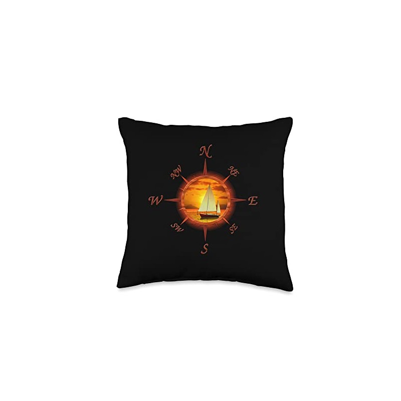 Sailing Compass And Sailboat Sunset Throw Pillow