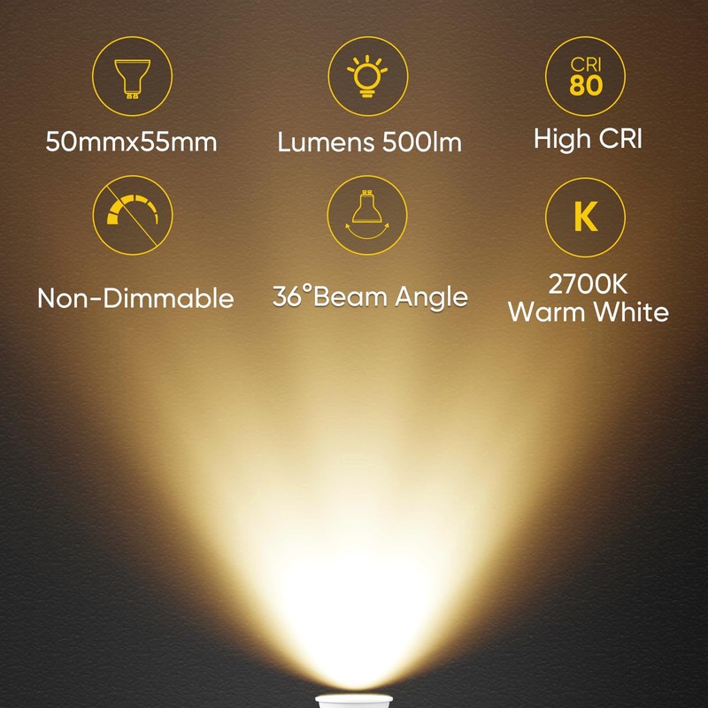 - Warmwei?es Licht- Sailsco gu10 led Birne 4.9W ist geeignet fr 220-240V AC Eingangsspannung, 2700K warmwei?es Licht, 500 Lumen, keine Aufw?rmzeit erforderlich, um maximale Beleuchtungsstufen zu erreichen. Bitte beachten Sie: Diese gu10 Strahlerbirne ist nicht dimmbar und ist nicht kompatibel mit Dimmern