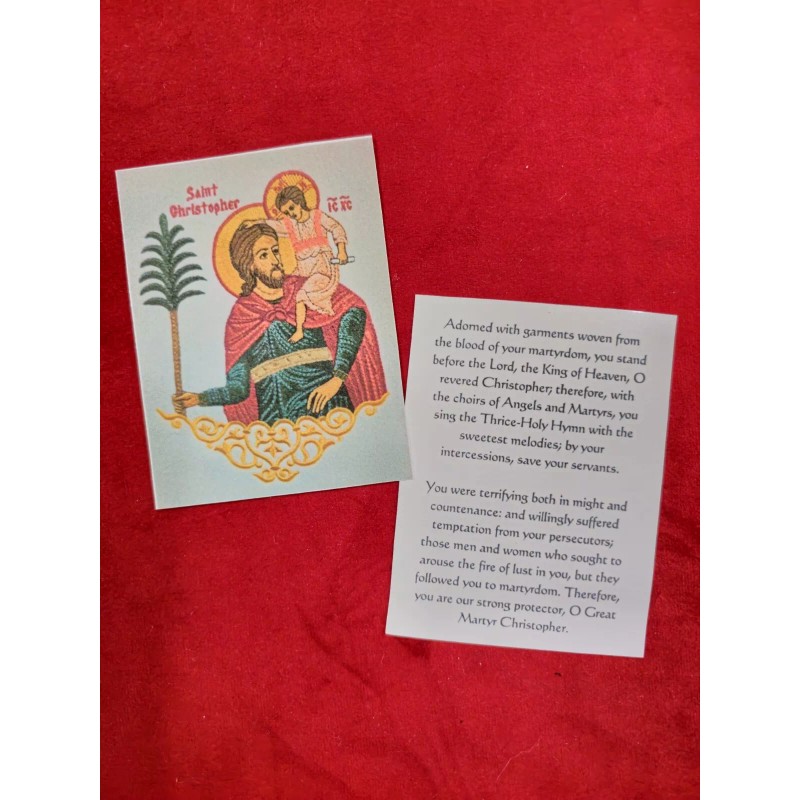 Design: Each card features a striking illustration of Saint Christopher, accompanied by traditional Orthodox prayers and messages that reflect his role as a guardian and protector.