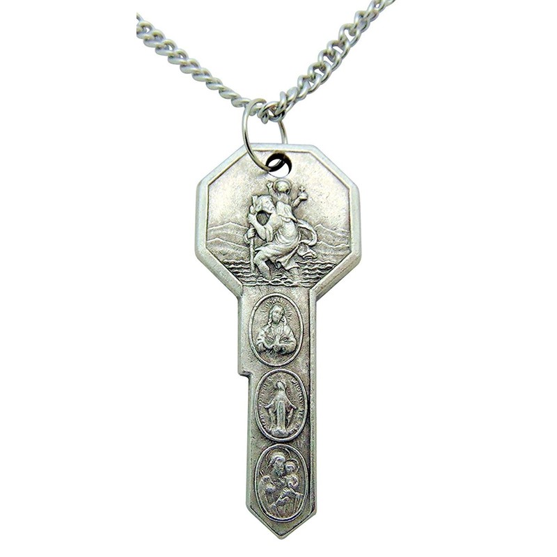 Saint Christopher & St Anthony Key Pendant 2 Inch Long with Chain