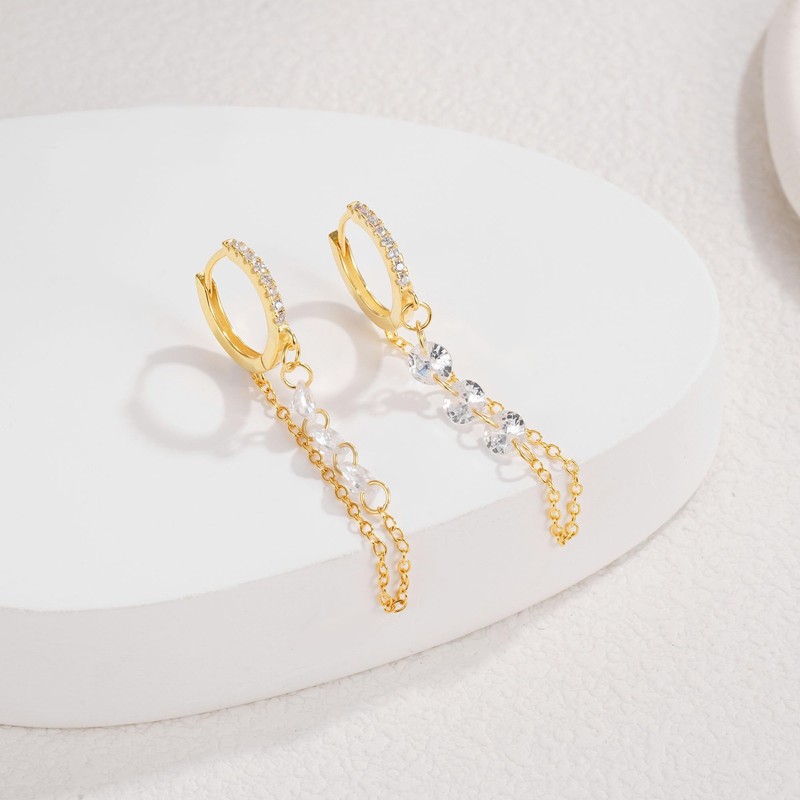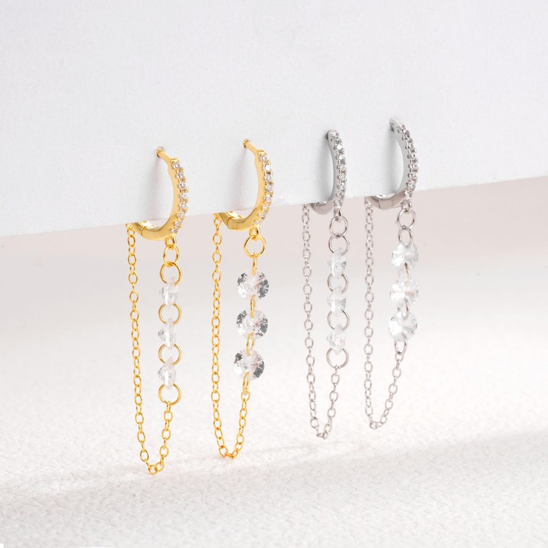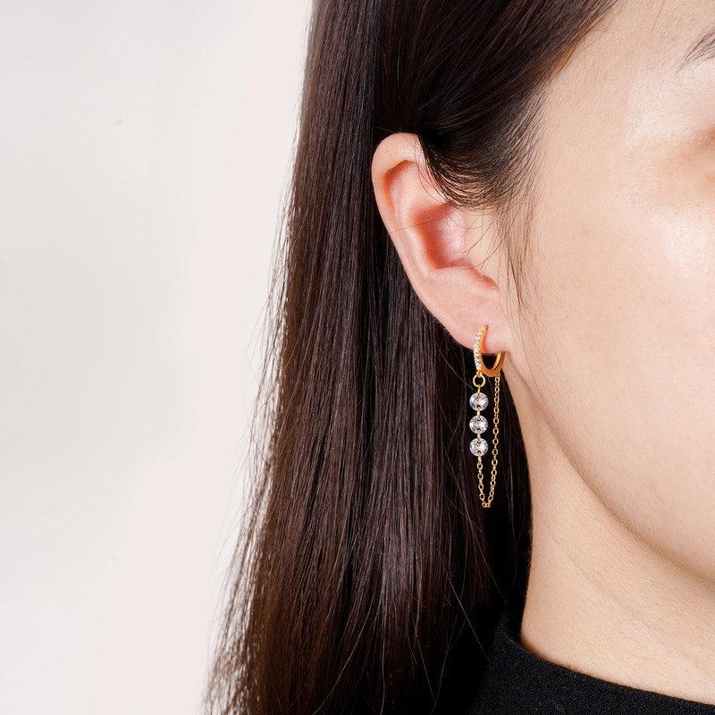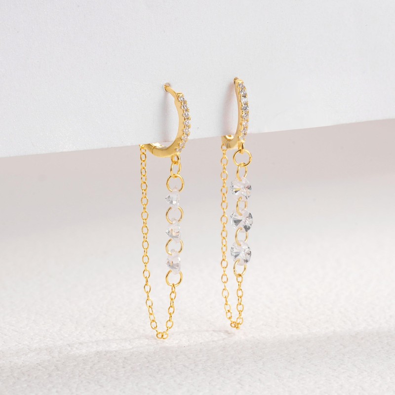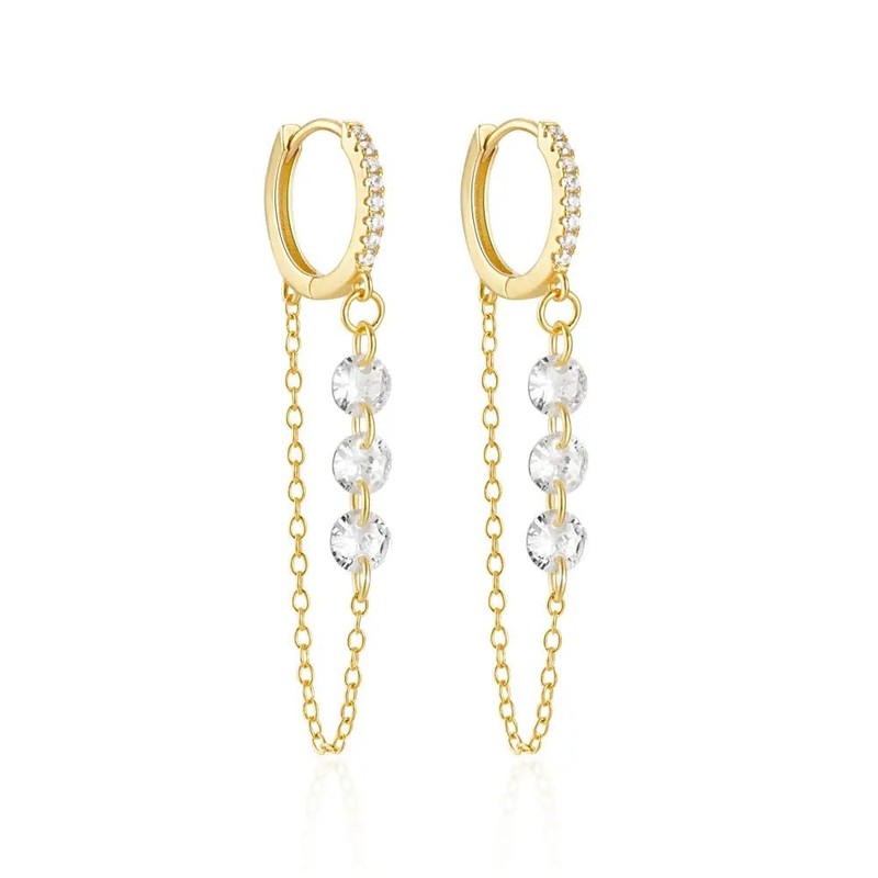 SAINT RAPHAËL Crystal Chain Dangle Huggie Hoop Earrings (Gold)