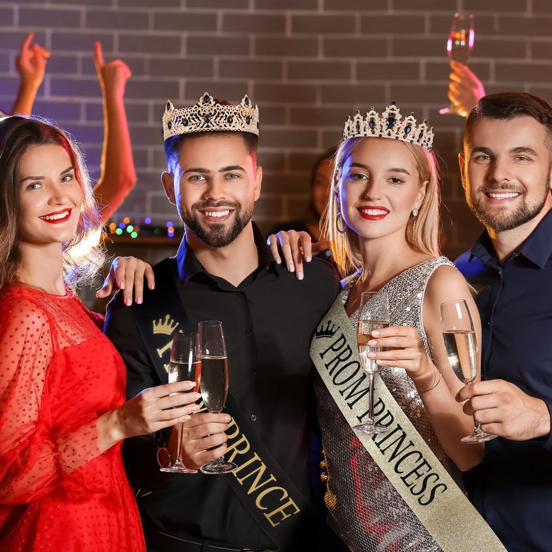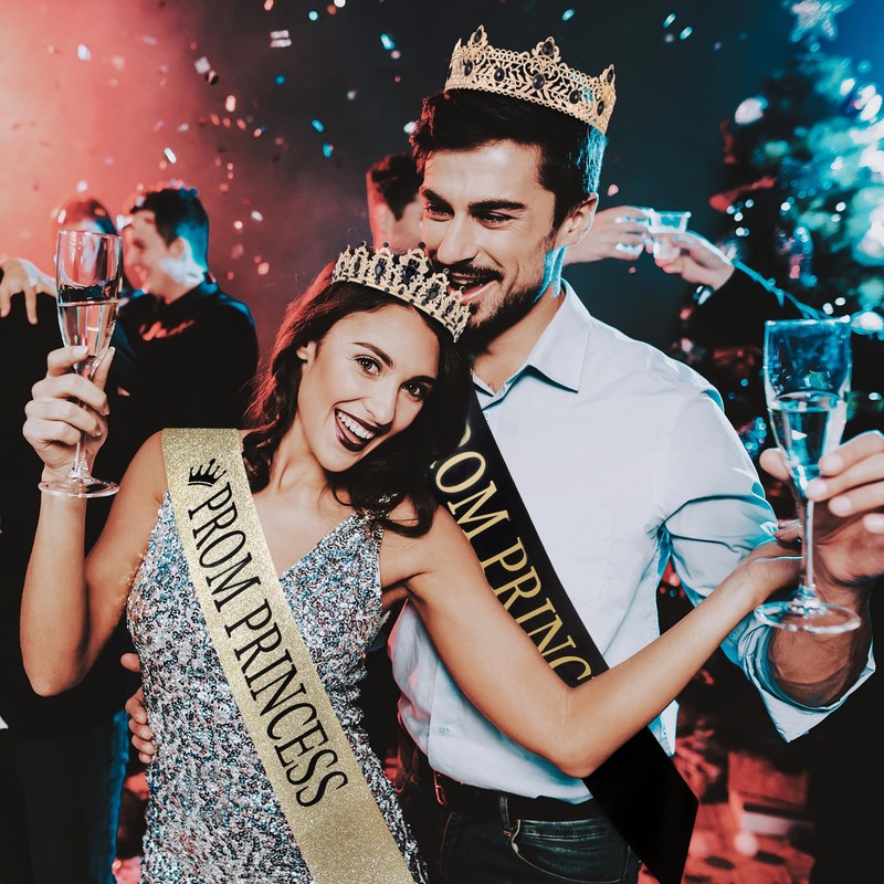 - What You Will Obtain: our package includes prince and princess crown set, prom sashes in black and gold, totally 4 pieces, you can wear them with your friends together, enough quantity will satisfy your needs