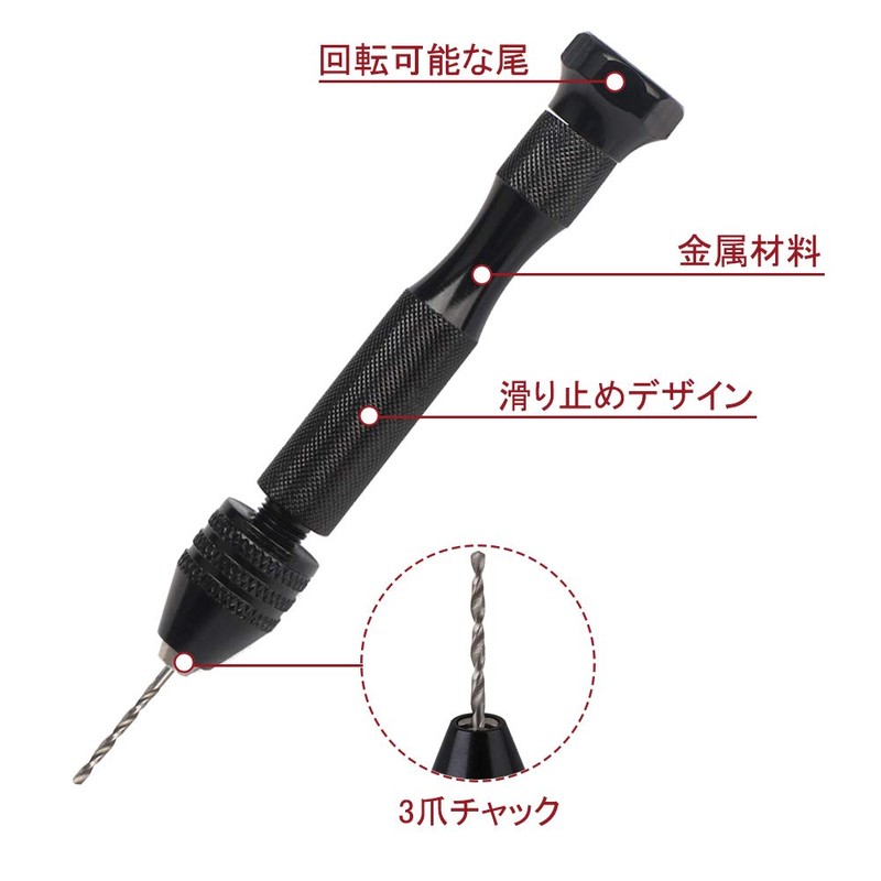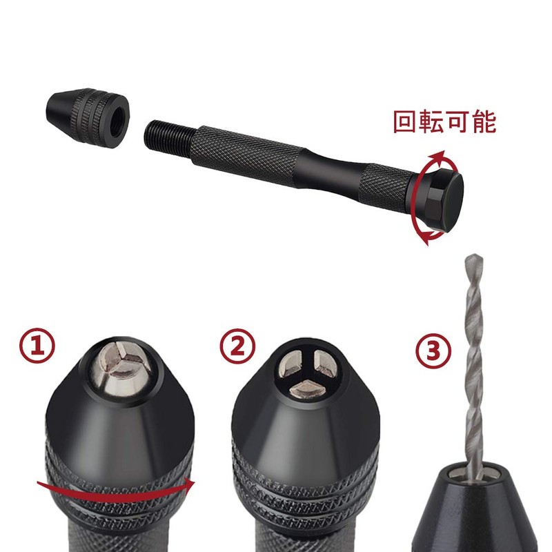 How to Use: 1. Turn the pin vise head, adjust the clamp width to the appropriate size, insert the drill and screw the head to fix. 2. Secure the working partner, hold the drill head in your hand, and turn it vertically, and the hole will be opened.
