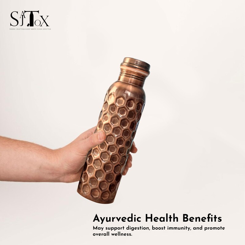 - DURABLE & AUTHENTIC REAL COPPER WATER BOTTLE: Crafted from 100% real copper, this sturdy copper bottle ensures longevity, Ayurvedic benefits, and timeless hydration.