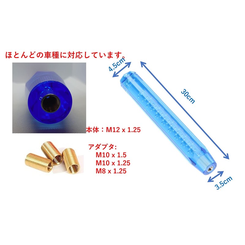 SakaSK Crystal Shift Knob, Bubble, Octagonal, 11.8 inches (300 mm), Foamed, Universal, Octagon Adapter Included, Long, Blue