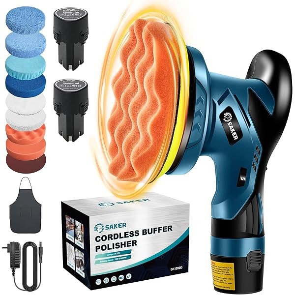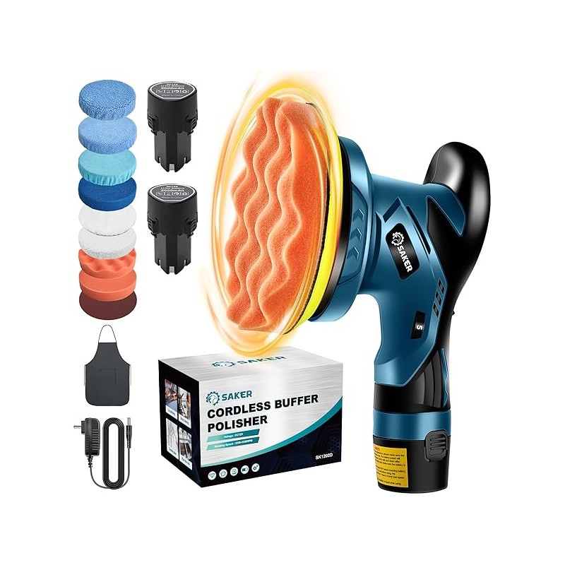 Saker Cordless Car Buffer Polisher - 6 Inch Portable Waxer Machine Kit with 2x2000mAh Batteries & 6 Variable Speed, Extra 16 PCS Attachments, Polisher for Car Detailing, Scratch Removing