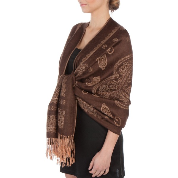 Sakkas Lightweight Two Tone Paisley Design Pashmina Fringe Scarf/Stole/Wrap - Brown/Beige