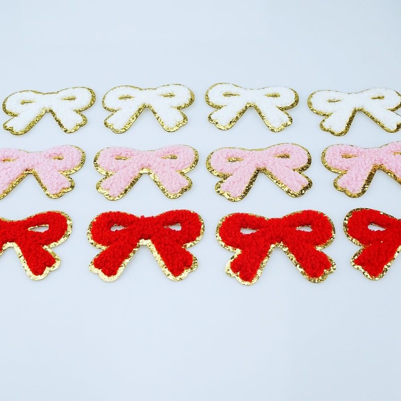 - PACKAGE INCLUDED: 12 PCS Bow Patches. Contains 4 red bow patches , 4 pink bow patches, and 4 white colors bow patches.