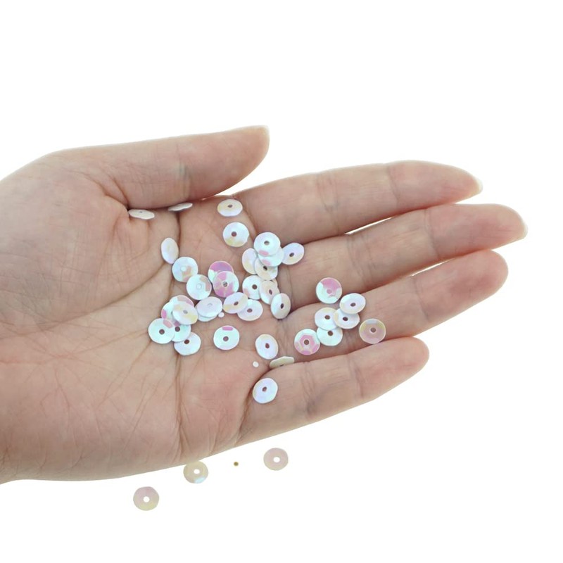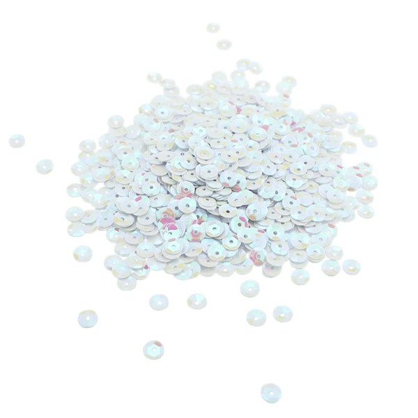 White Iridescent Loose Sequins 6 MM Crystal Cupped Spangles for Crafts Sewing Embroidery DIY Wedding Decoration by SaktopDeco