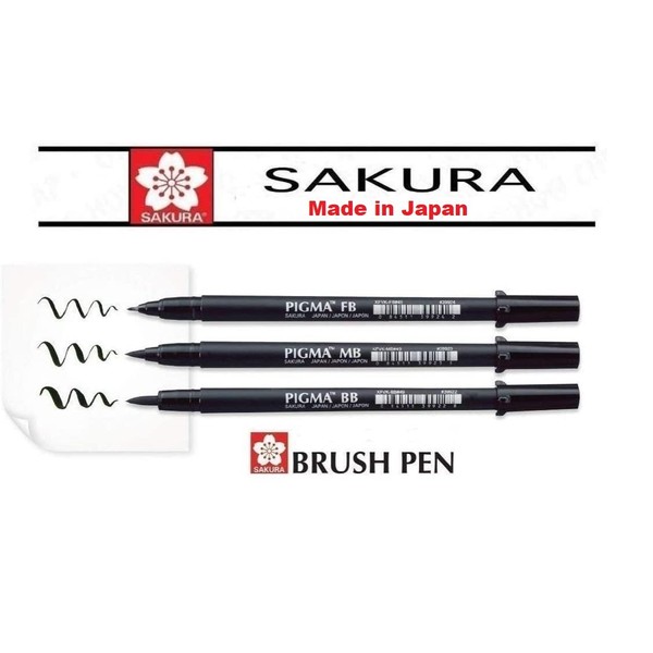 Sakura Pigma Brush Pen Black ,set 3 pcs,1mm ,2mm, 3mm