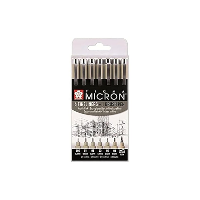 - Sakura Pigma Micron Set 6 Fineliners & 1 Pigma Brush Pen.