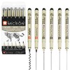 SAKURA Pigma Micron - Pigment Fineliner Pens - 01/03/05/08/Graphic/Brush - Wallet of 6 - Black Ink