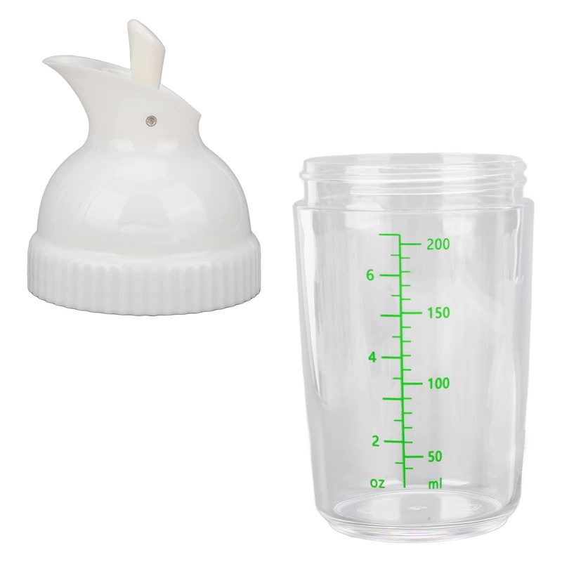 - WITH LID:This salad dressing container has a lid, has a 200ml capacity, is marked with measurements in cups, ounces and milliliters, and is suitable for dressings such as soy sauce, vinegar, oil, etc.