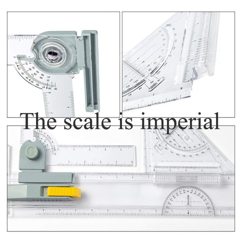 ---Package List: --- 1x Set Square, 2x Clamps, 1x Protractor, 2 Anti Slip Support Legs, 1x Sliding Ruler All parts in picture included. 180 degree protractor marked with equidistant lines for hatching 2 Clamps to hold the paper in place Set Square marked with a Protractor All pieces are removable for ease.