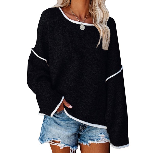 SALENT Women's Soft Oversized Sweaters Long Sleeve Crew Neck Chunky Knit Casual Tunic Knitwear Tops (US, Alpha, Medium, Regular, Regular, Black)