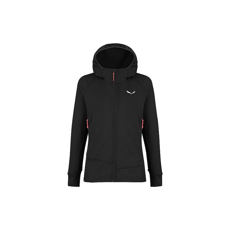 - Lightweight fleece midlayer with hood for women for trekking tours in the mountains.