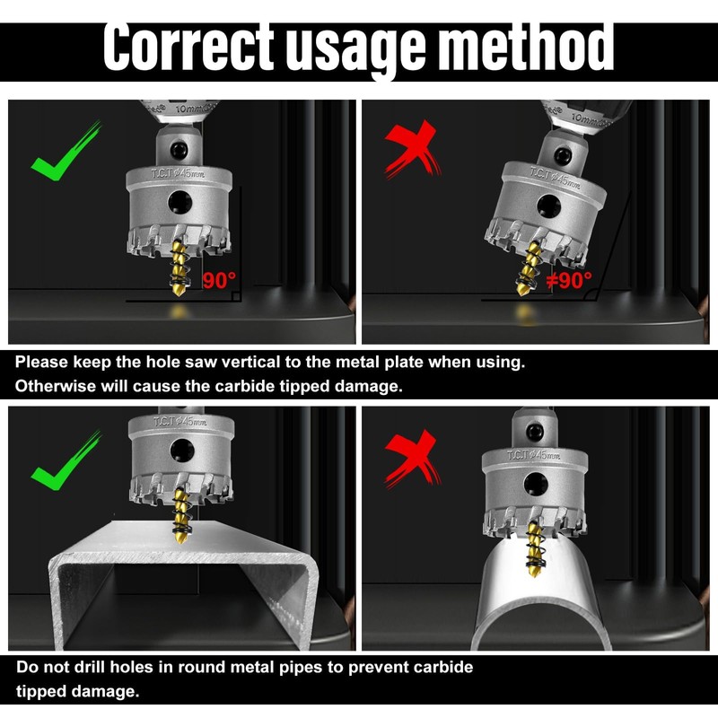- Reminder: For safety purposes, remember to add coolant during continuous high-speed drilling, and please wear protective goggles and gloves when using our hole saw set