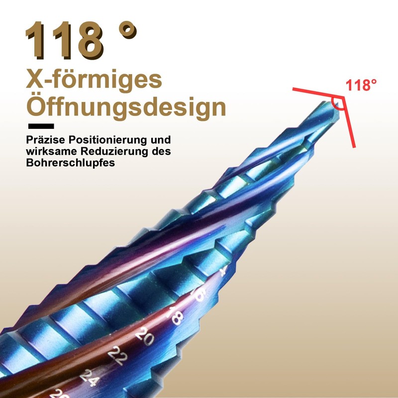 - 【Advantage】HSS-TiAlN step drill combines the strengths of high-performance high-speed steel (HSS) with the modern TiAlN coating to create a powerful and durable tool for stainless steel, metal sheets, wood, plastic, aluminum, copper and other metal sheets