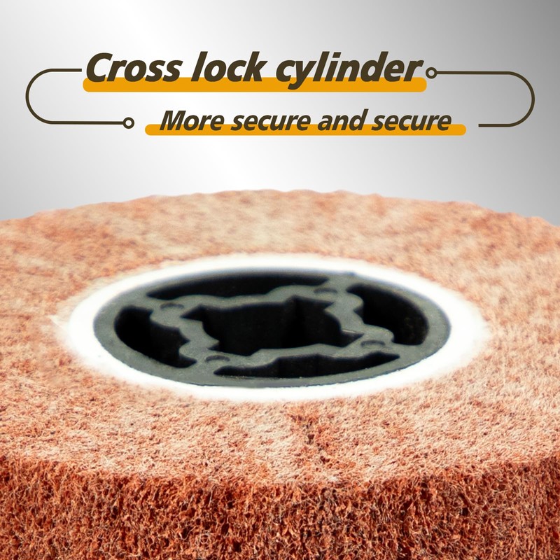- Cross Lock Design - With the cross lock cylinder design, the lock buckle is tight and not easy to fall off, so that you can work at ease. Adopting special joint technology, it canr esist High temperature. Wide Application - The polishing wheel can polish mild steel, stainless steel, aluminum, copper products, plastics, fibers, wood, stone, concrete surfaces, etc. Used in automobiles, ships, construction, furniture, bridges, home repairs.