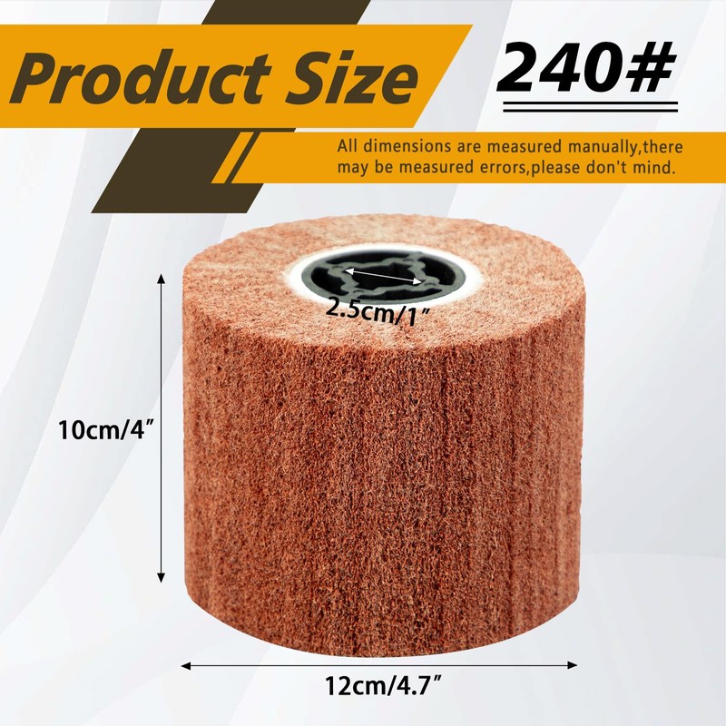 SALI Non Woven Wire Abrasive Drawing Polishing Burnishing Wheel Flap Brush Wire Brush Drum Surface Conditioning Tool for Metal Surface Polishing Grinding Removing Rust 120x100x19mm (240 Grit)