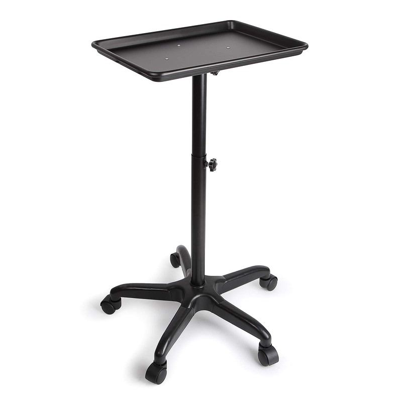 Salon Tray Aluminum Alloy Salon Rolling Trolley Cart with Roller Tray Height Adjustable for Salon Beauty Spa Tattoo USA Stock (Black)