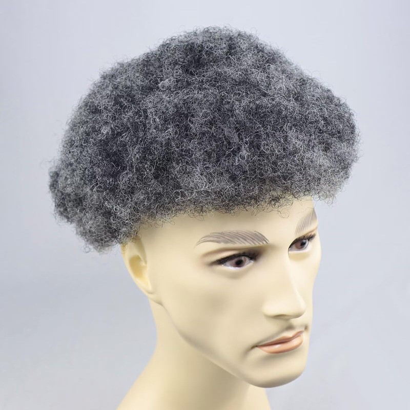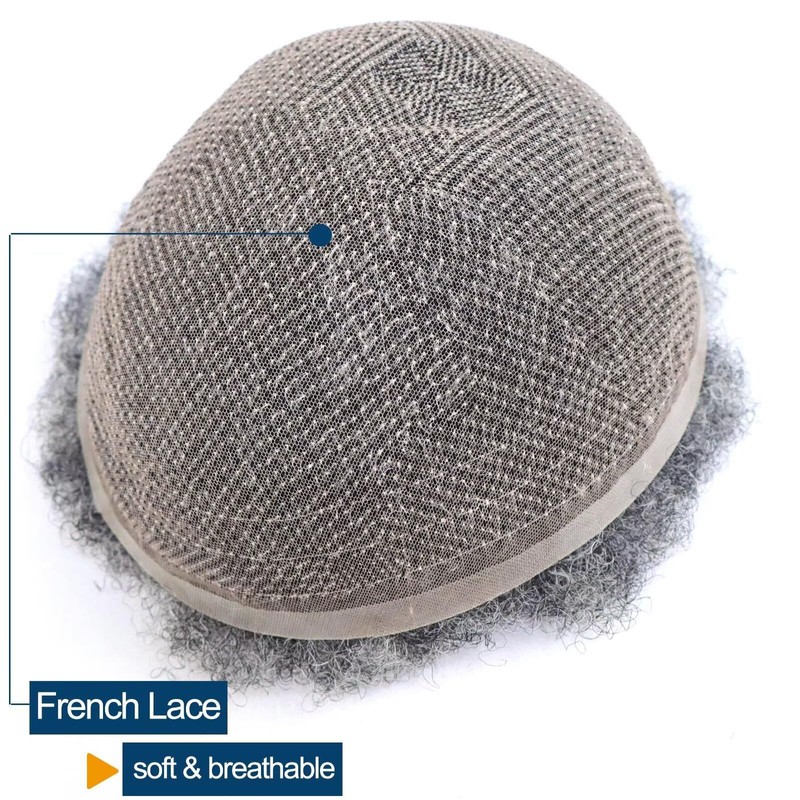 Salt and Pepper Afro Toupee for Men Human Hair Replacement System French Lace Mens Hair Piece Protesis African American Man Hairpiece 1B Off Back With 50% Grey Male Toupee