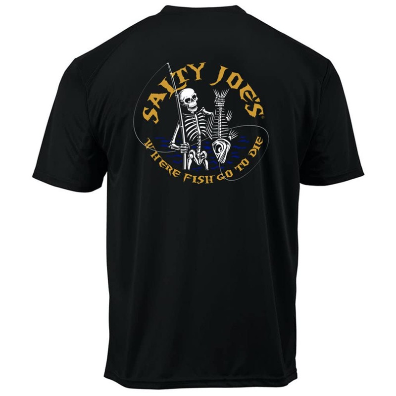 SALTY JOES Fishin' Bones Moisture Wicking Graphic Tee-L-Black