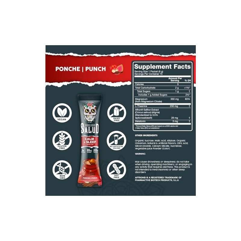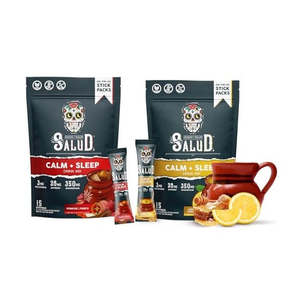 Salud 2-Pack | 2-in-1 Calm + Sleep (Punch) & Calm + Sleep (Lemon Honey) – 15 Servings Each, Drink Mix, Dairy & Soy Free, Non-GMO, Gluten Free, Vegan, Low Calorie, 1g of Sugar