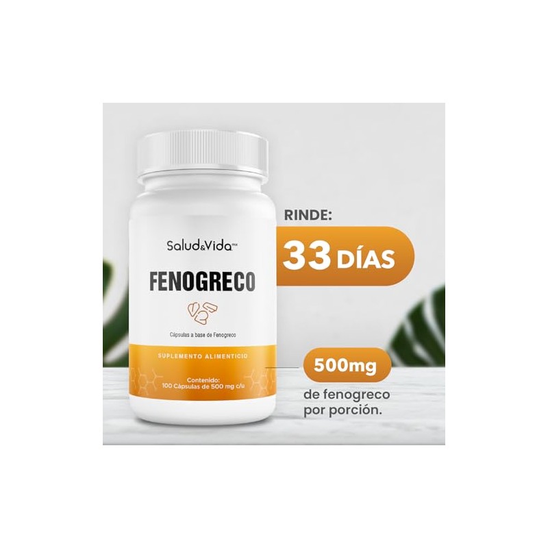 Descubre el poder del Fenogreco (Trigonella foenum-graecum) en su forma más conveniente y efectiva con el Suplemento de Fenogreco en Cápsulas 500mg de Salud & Vida MX. Cada cápsula contiene 500 mg de polvo de fenogreco puro, proporcionando una fuente natural de nutrientes esenciales para mejorar tu bienestar. Con 100 cápsulas por envase, este suplemento te brinda una opción confiable respaldada por la marca Salud & Vida MX.