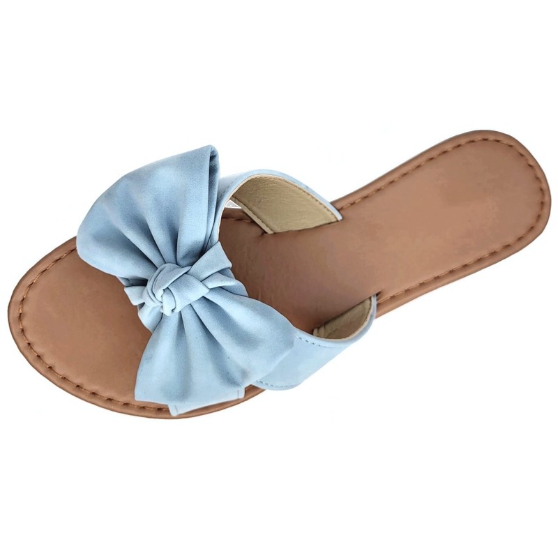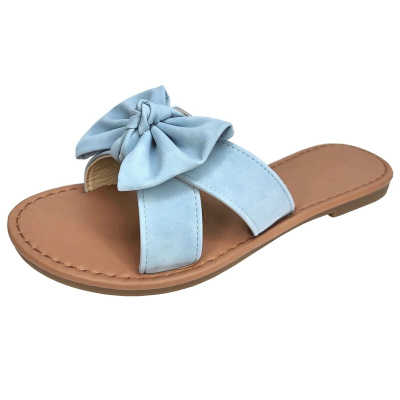 SAMANTHA Sandalias planas sin cordones con lazo de nudo torcido, Celeste, 8.5 US