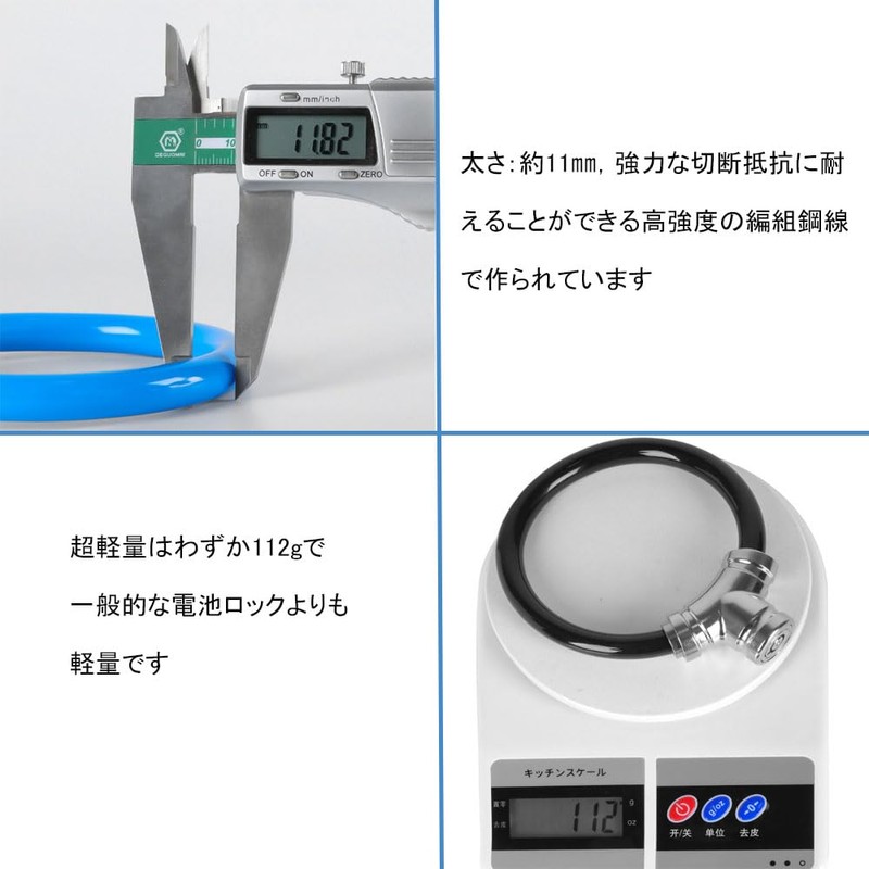Samcos Bicycle Lock, Cable Lock, U-Shaped Lock, Zinc Alloy, Theft Proof, Thickness 0.5 inch (12 mm), High Cut Resistance, Lightweight, Anti-Theft, Bicycle Cable Lock, Length 11.8 inches (300 mm),