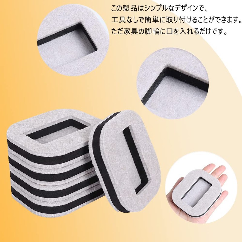 - 【Quiet and Comfortable】Moving furniture with caster stoppers reduces annoying noise that occur when moving furniture, making your home more quiet and comfortable. In addition, this product can reduce the friction between the floor and furniture and extend the life of the floor