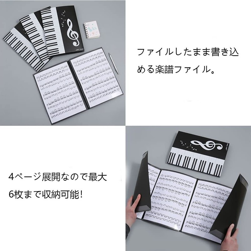Samcos Sheet Music File, A4 Size, Non-Reflective, 4 Sides, Holds 6 Sheets, Writing Without Taking Out Music File, Electronic Piano, Accessory (Black, 1)