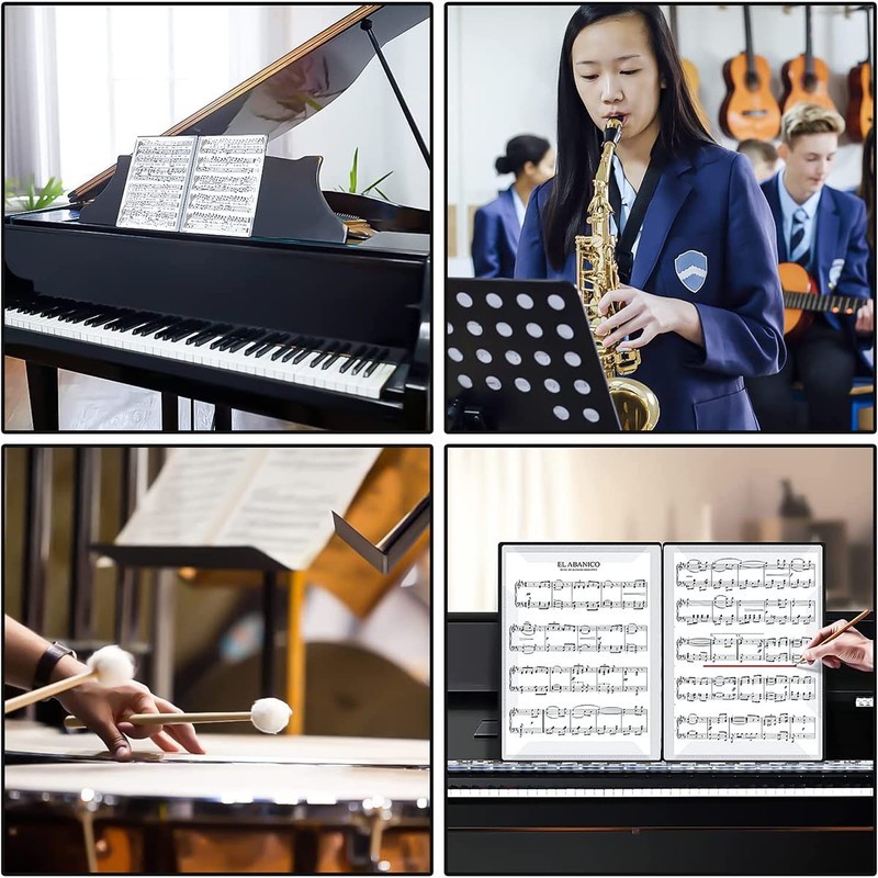 - (Easy to Use) Pages won't close themselves even when placed on one side, and only the top and bottom part of the music surface will be sandwiched, so you don't have to take them out when you are noting on your sheet music