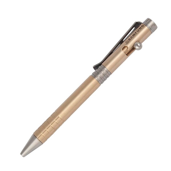 SAMFUNG Stick Ballpoint Pen Solid Brass EDC Pen, Pocket Rollerball Signature Pen with Black Ink Refill for Writing Stationery Gift Office Business
