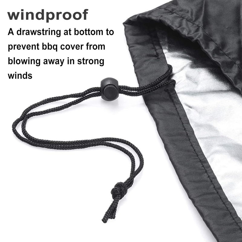 - Ajuste perfecto: hay un cordón para mantener la cubierta de la parrilla en su lugar. El conveniente cordón en la parte inferior puede ayudar a que la funda se ajuste perfectamente y evitar que la funda se salga.