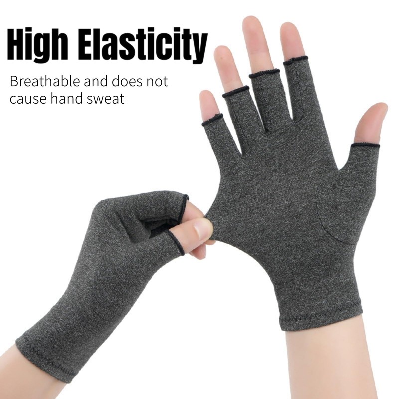 - 【Package Includes】✿ You will get 2 pairs compression gloves for arthritis women and men, color is dark grey, free size for most persons hands. Fingerless gloves size: 19.5*7.5cm.